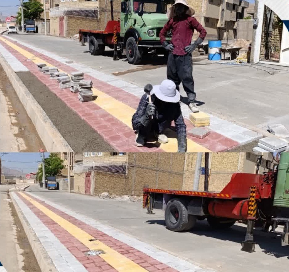 اجرای عملیات موزاییک فرش رفیوژ میانی خیابان ۲۰ متری محله چاووشی شهرضا