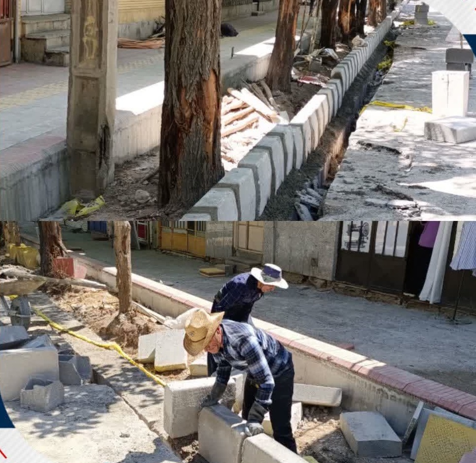 تداوم عملیات پیاده رو سازی و اصلاح جوی و جدول خیابان امیرکبیر شهرضا
