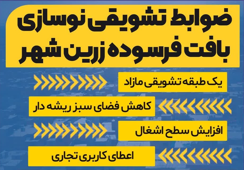 به گزارش خبرگزاری شهرداری های کشور و به نقل از روابط عمومی شهرداری زرین شهر، حسین اسماعیلی احمدی شهردار زرین شهر از بسته تشویقی نوسازی بافت های فرسوده خبر داد و گفت: این بسته فرصتی طلایی برای نوسازی بافت‌های فرسوده غیر تاریخی است و شهروندان ساکن در این بافت‌ها می‌توانند جهت اطلاع از جزئیات بیشتر و برخورداری از این فرصت به شهرداری زرین‌شهر مراجعه کنند.